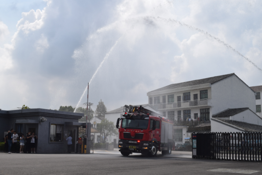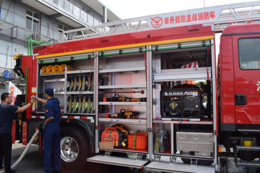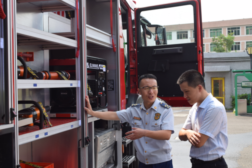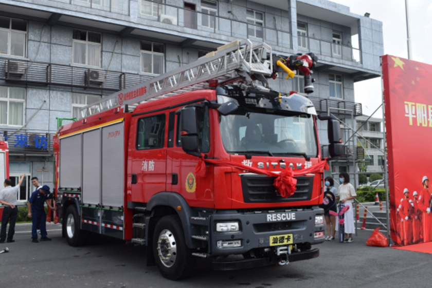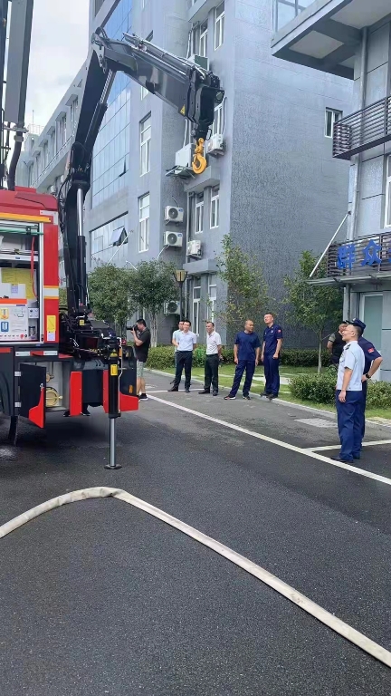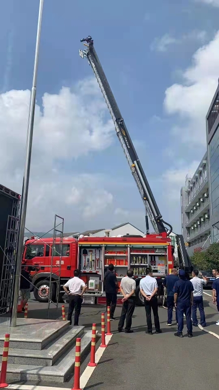 演示结束后,镇政府各级领导及平阳县大队领导来到新购的举升抢险主战消防车前,详 细参观、了解消防车辆技术性能,观摩了新型消防车辆器材的展示和车辆各种功能操作 演示,并对我公司研制的新产品进行了点评,给予了高度的赞许,称此款车型最大化的 满足了老旧小区、狭窄街道、城乡低建筑物等灭火救援工作的需要。