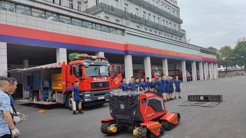 2022年6月末公司领导及销售经理带着公司两款主打产品——举升抢险主战消防车和全地形消防灭火机器人在重庆总队、贵阳总队及各支队进行巡展演示。