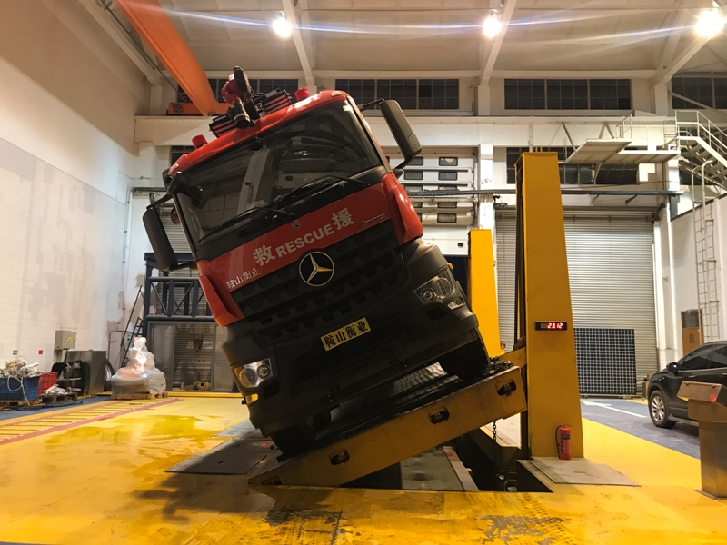 车辆底盘为德国奔驰Arocs4158底盘,发动机型号OM473LA,功率:425kw,国六排放标准,轴距:1750mm+4600mm+1350mm,罐体材质:采有优质不锈钢板304;容罐容量:水15000kg,泡沫3000kg;消防泵为美国大力,型号为ZSP2650;流量:10000L/min;负压式泡沫比例混合器,型号为英国FSA;举升臂顶端消防炮Ⅰ,型号:3482+5177美国阿密隆,流量80L/S,射程:水≥80m,泡沫≥70m;车体尾部消防炮Ⅱ,型号:DICODOPLUS 150法国博克,流量:10000L/M,射程:水≥110 m,泡沫≥100m,大流量消防枪,车顶前部设有举升高度为12米的臂架。 整车器材箱卷帘门防水槽采用专用铝合金开模型材,型材上加装LED照明灯带,使整车形成环绕式照明,既美观且照明效果又好。车顶前部设有举升高度为12米的臂架,顶端加装有进口电控消防炮。车顶后部设有进口电控大流量消防炮。箱体内部器材框架采取了专用的的挡板型材,有效的保证了内部器材固定的稳定性,同时使器材标牌整齐化一,清晰明了。车顶两侧女儿墙内部加装有LED照明灯带,可满足夜间工作人员在车顶操作时对照明需求。配备大流量消防枪,可喷射水、泡沫、等灭火介质,灭火效率极高。
